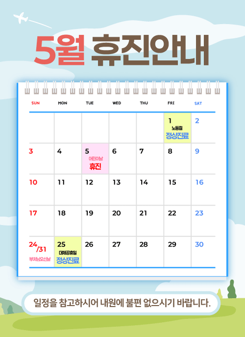 • 토요일 오전 8:00 ~ 오후 1:30 (토요일 점심시간 없이 진료)