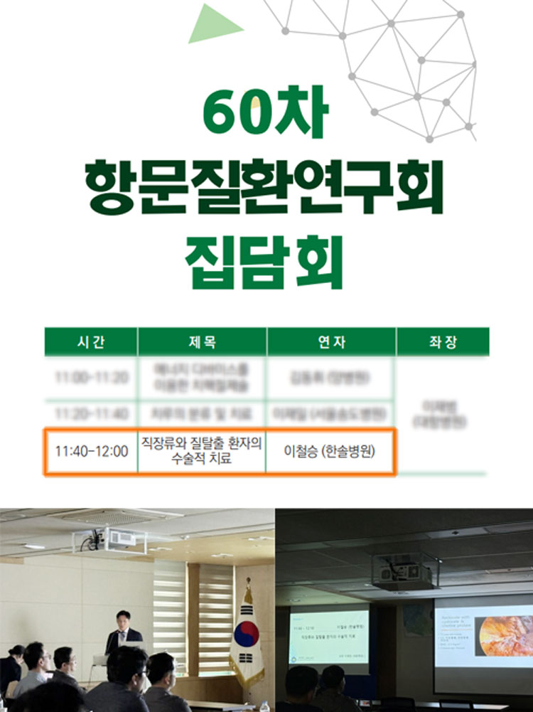 발표주제 : 직장류와 질탈출 환자의 수술적 치료
