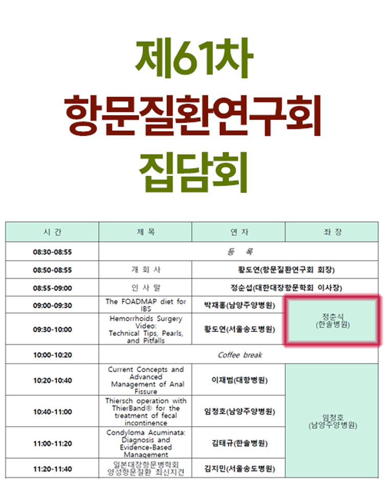 2025 항문질환연구회 제61차 집담회 좌장 참여