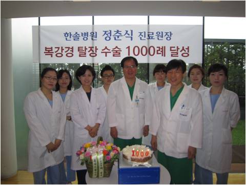 복강경을 이용한 탈장수술 1000례 달성 한솔병원 탈장센터 정춘식 진료원장은 복강경을 이용한 탈장수술 1000례를 달성하였습니다. 이러한 결과는 단독 의사로서는 이례적인 일로, 정춘식 진료원장 이하 한솔병원 직원들의 노력과 열정, 그리고 한솔병원을 믿고 선택해주신 분들이 있었기에 가능했습니다.