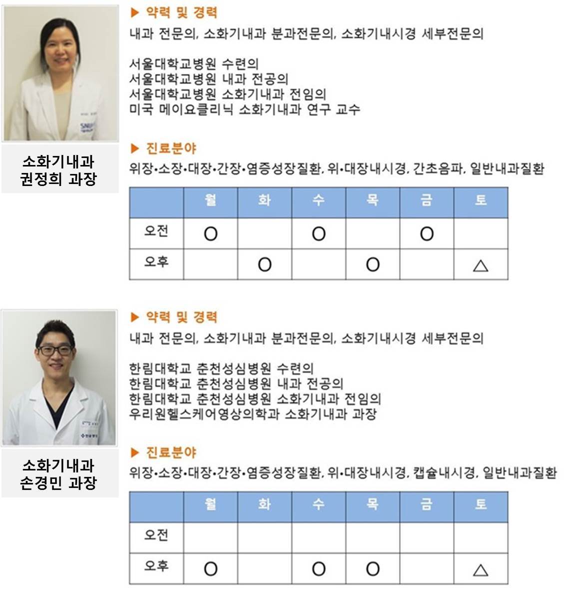 소화기내과 권정희 과장, 소화기내과 손경민 과장이 새롭게 진료를 시작했습니다.