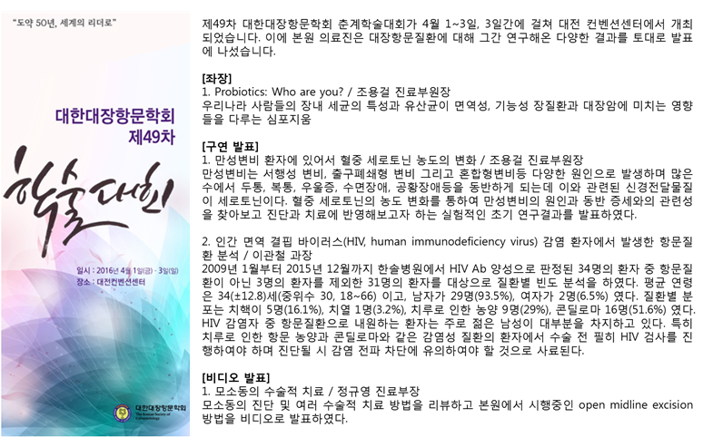 제49차 대장항문학회 춘계학술대회 발표